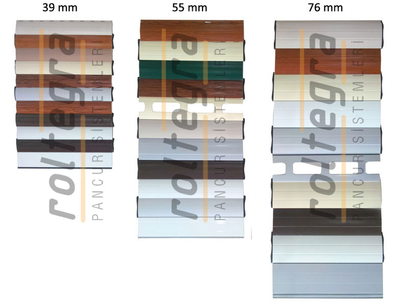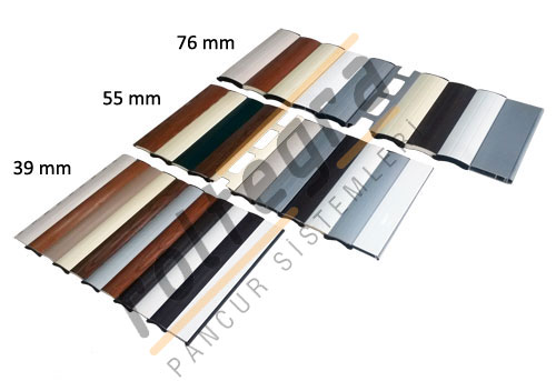 Çalışma aralığına ve yüksekliğine göre rollforming ile imal edilmiş, standart yoğunlukta poliüretan dolgulu 39mm, 55mm ve 76mm lameller kullanılır.